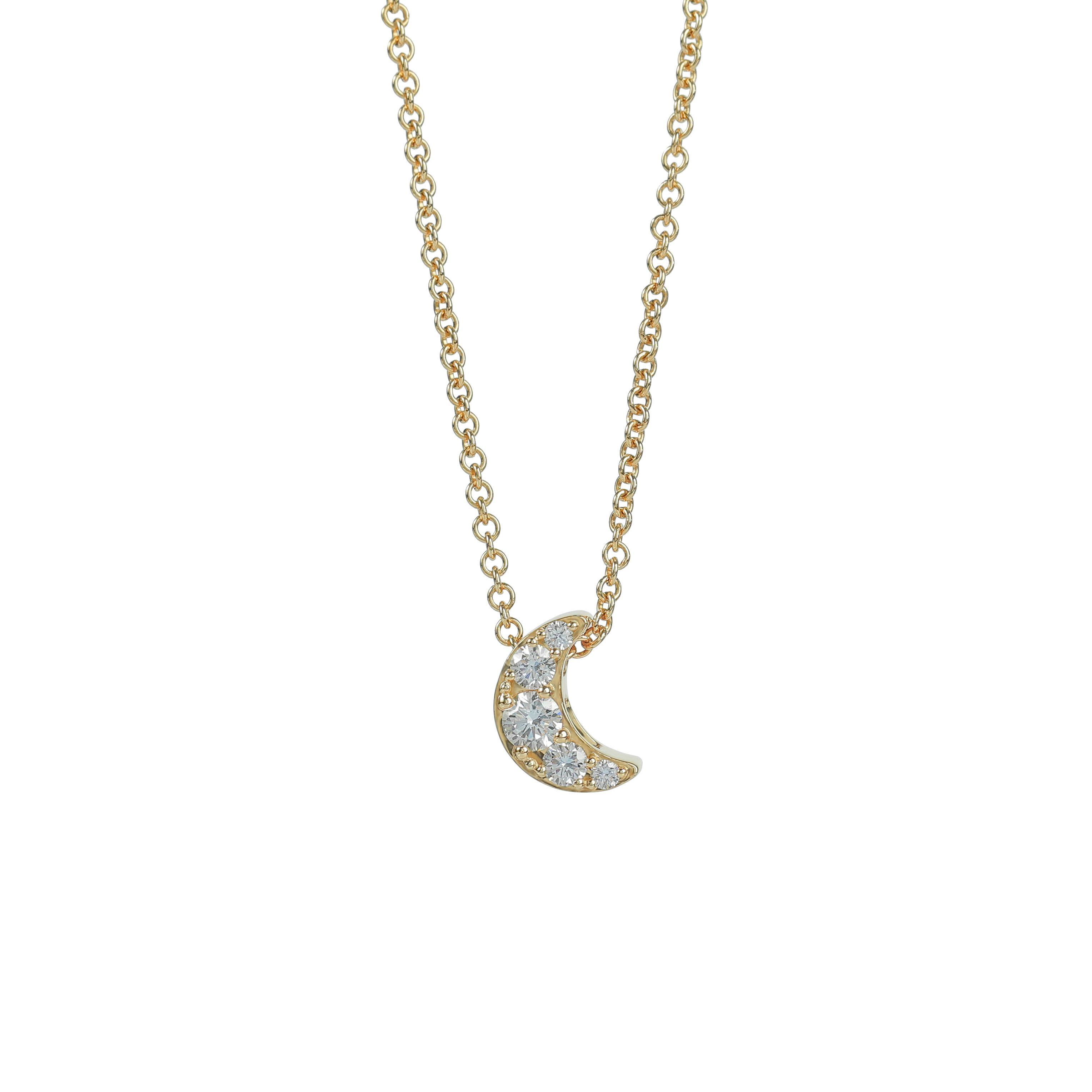 Diamond jewelry collection by Luxmatters. Exquisitely crafted with 18K gold and adorned with F VVS quality diamonds, our beautiful pieces make milestone gifts they will cherish for years to come. Twinkle twinkle little star, do you know how loved you are? This collection takes the shape of the moon and stars. Growing up, do you remember how our parents used to read us bedtime stories, tuck us in tight, say a sweet prayer and kiss us goodnight while we looked up at the sky? Let this collection forever remind us of our childhood imagination. Mond & Stea Collection comprises studs earrings, dangling earrings, necklaces and bracelets